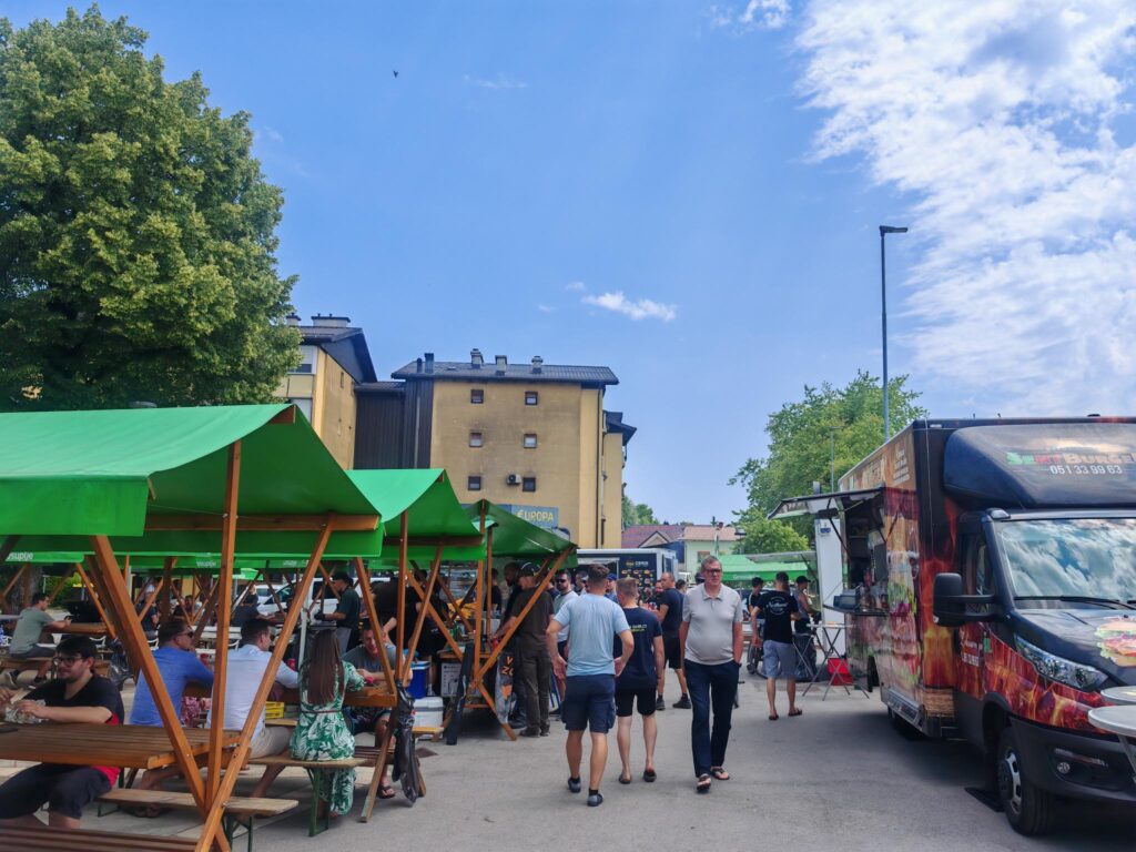 Dogodek, ki je trajal od 11. do 22. ure, je ob začetku poletja ponudil odlično priložnost za sproščeno druženje in okušanje vrhunskih burgerjev različnih okusov. Obiskovalci so lahko izbirali med pestro ponudbo sočnih mesnih in vegetarijanskih burgerjev, ki so jih pripravljali Mangoop Burgers, Smash Ljubljana, Gud Street Fud, Proper Burger, Pr’ Martinet in Šentburger. Vsak je obiskovalce navdušil s svojo unikatno interpretacijo burgerjev, pripravljenih iz svežih in kakovostnih sestavin.