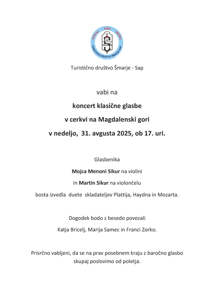 Prizorišče koncerta je Marijino svetišče na Magdalenski gori.